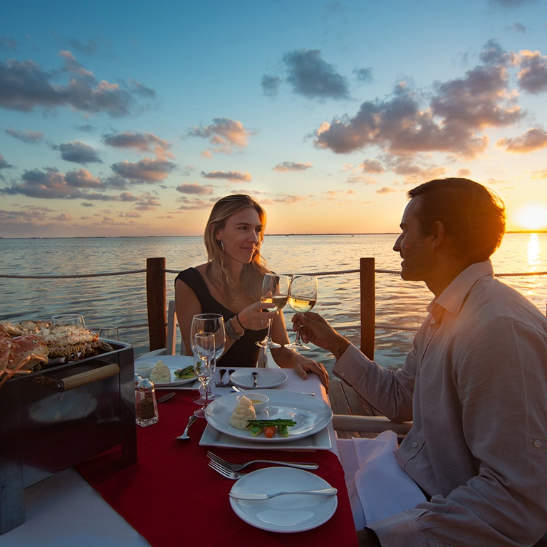 Imagine beginning your vacation at Sunset Royal, facing the white sand beach and the deep blue of the Caribbean Sea, and then transferring by Water Taxi or Interhotel Shuttle to Sunset Marina, where the pace shifts to the serenity of the Nichupté Lagoon, spectacular sunsets, and an ideal setting for contemplation. Add to this a variety of culinary offerings, as each property provides flavors, concepts, and gastronomic experiences that make every meal a journey in itself.